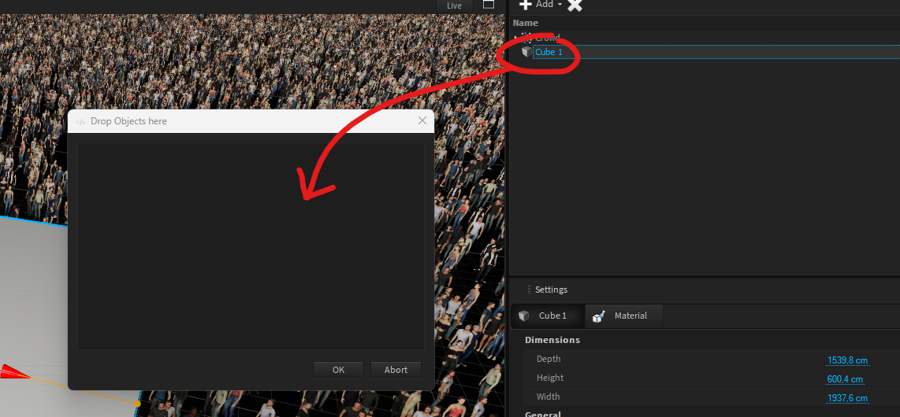Drag the Cube object from the 3D-Hierarchy in the Dialog box