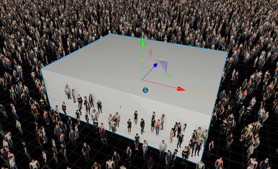 Note that this object is optimized to render thousands of instances, but having multiple MassCrowd objects in one scene can increase memory requirements and loading time a lot! Instead of using several objects, try to use empty - NoGo Areas.