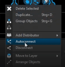 Once you need to connect multiple fixture pairs it can be time-consuming to do this manually one by one. You may use the auto connection function instead. It automatically searches for open connectors and tries to connect fixtures one by one. Please note that this feature cannot automatically connect a whole setup. It always requires the same amount of active and passive fixtures to work correctly.