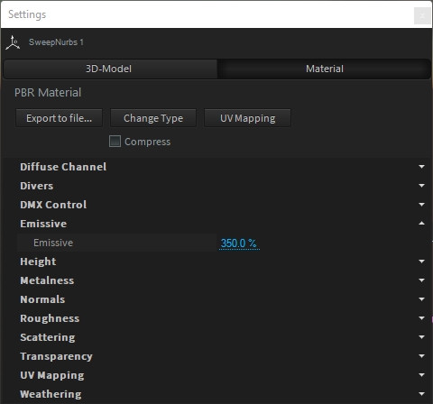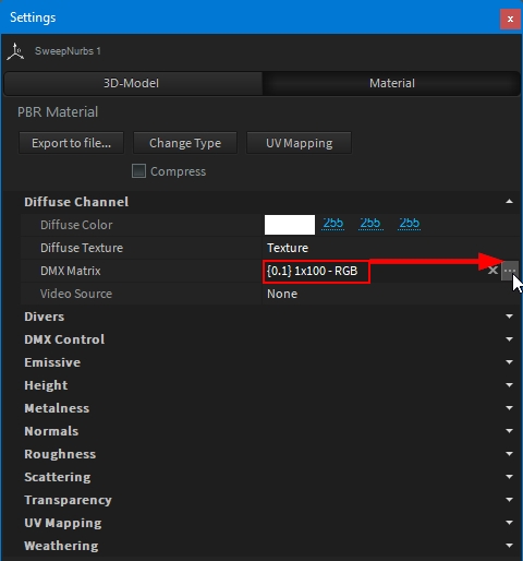 To add the DMX-Matrix feature on a model, access its Material settings, and click on the "..." button: