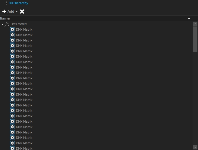 To keep your project 3D Hierarchy as clean as possible, you can group all your DMX Matrix fixtures: