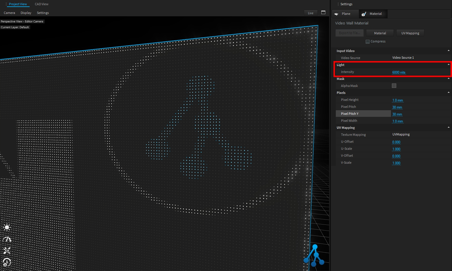 The screen intensity (unit is nits), can be adjusted from Light settings: