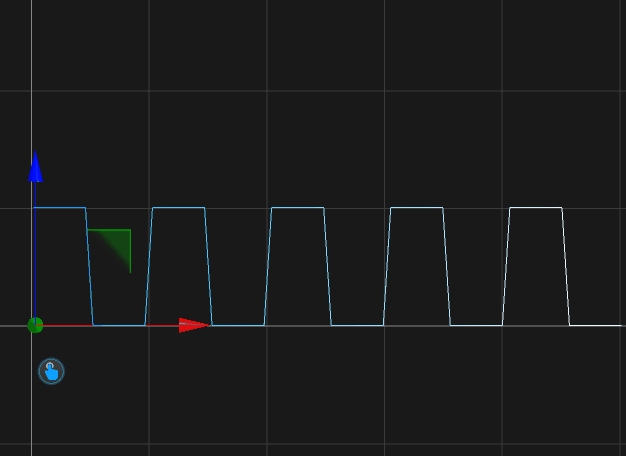 X(t) = 100 * t Y(t) = 0.0 Z(t) = if(t % 1.0 > 0.5, 0.0, 100.0) t-Min = 0.0 t-Max = 5.0 Samples = 80