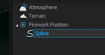 Add a Firework-Position object next to the Spline.