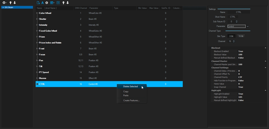 Delete a DMX Channel by right-clicking on it > Delete