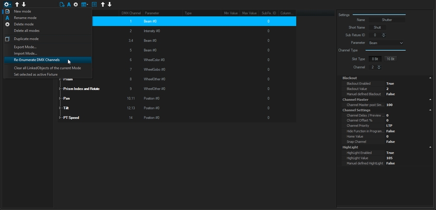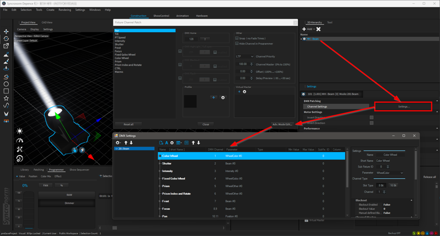 To do this, select the desired fixtures and then select the button labeled "Channel Settings" in the Settings window.