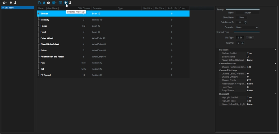 If needed, you can quickly reorganize/adjust the DMX chart of your selected fixture(s).