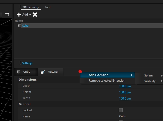 To add an extension to any object, right-click on the tab bar within the Settings window and choose Add Extension.