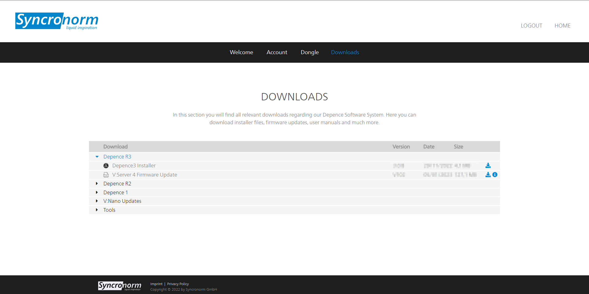 Connect to [your Syncronorm account](https://account.syncronorm.com/downloads) to access the download page of Depence and obtain the latest Software installer: