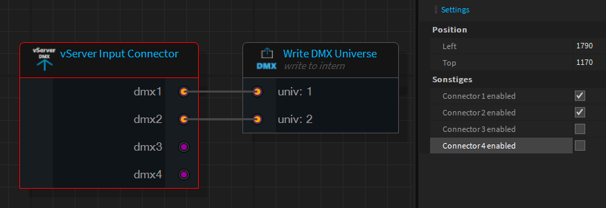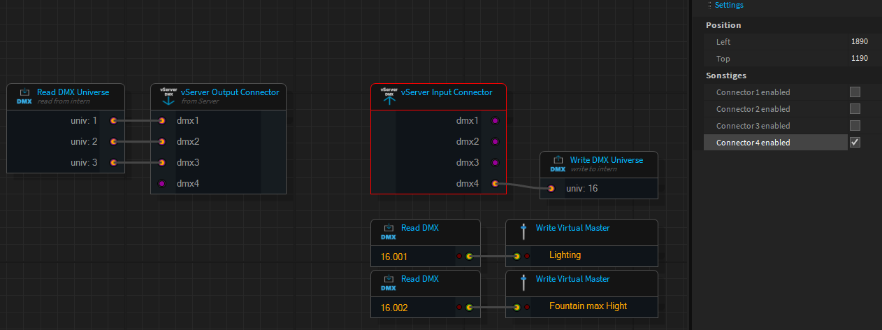 # Connection example for recording DMX values via the 4 DMX XLR connectors of the vServer.