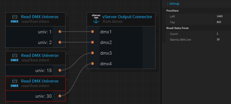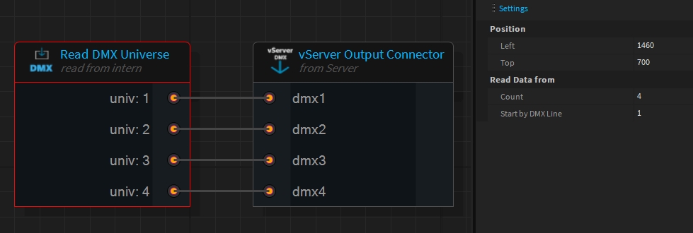 Routing different DMX universes to the 4 XLR outputs of the vServer