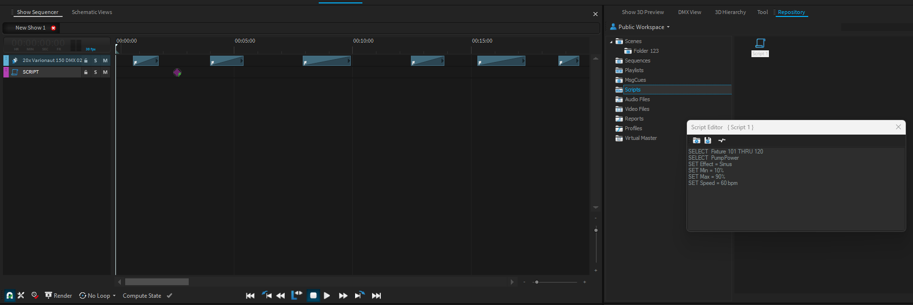 Using script commands, you can accomplish some interesting tasks that aren't possible with simple scenes. For this purpose, you use the Depence script language and create script files in the 'Scripts' folder within the repository. These script files can be executed within a sequence in a script track.