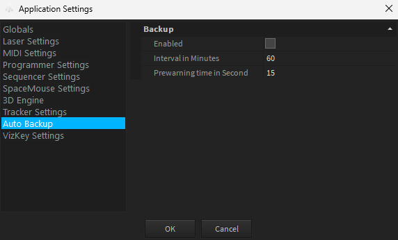 You can set the options for the interval and the lead time at which a backup is to be created in the Application Settings.