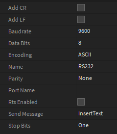 Port Name, Bouderate, Data Bits, Parity, Rts Enabled, Stop Bits