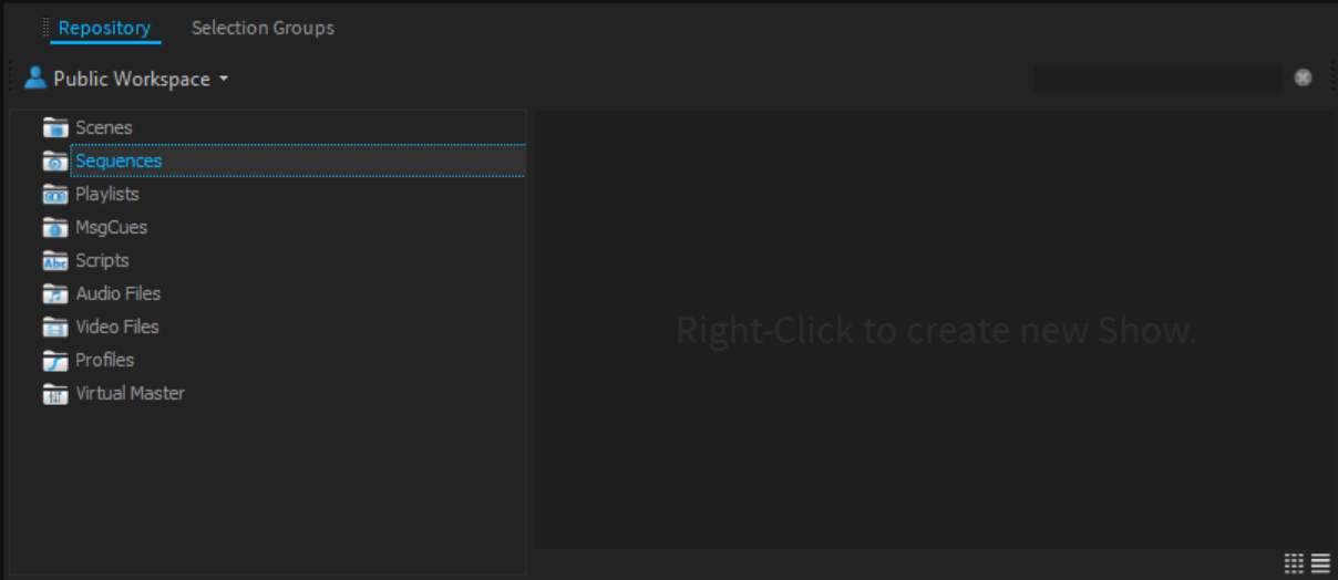 To create a new Show file, from the Sequences directory right-click on the right side: