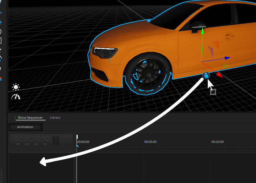 Pick the Object on its Drag-Icon and drag it over the Timeline Track area. This will create an Object-Keyframe Track for this Object including basic property tracks for Position, Rotation, and Scale.