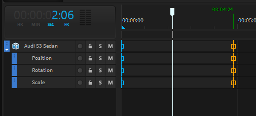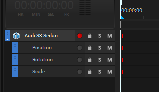 Once you recorded on the Object-Track, it will automatically record keys for all property tracks. While moving the Timeline Position pointer you can see how the animation will interpolate between the keyframes.