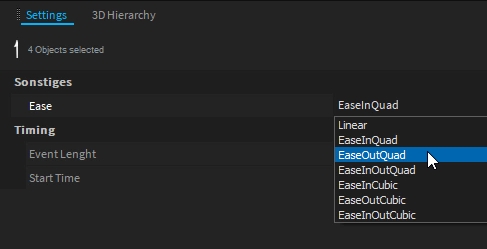 By default, the timeline will interpolate linearly between two keyframes. This option can be changed per Keyframe using the Easing property of the keyframe.