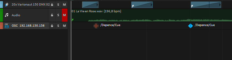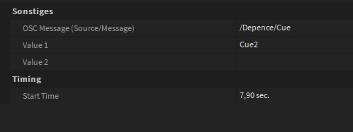 An OSC command can have up to two additional parameters. To enter the OSC command and the parameters, draw an OSC event into the track, select it, and change the values in the Settings window.