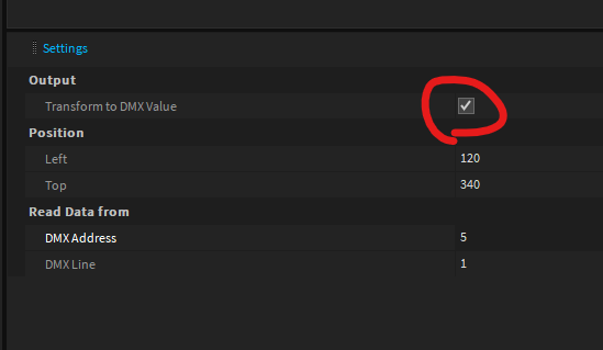 Make sure to enable "Transform to DMX value" on the Read-DMX object. Otherwise it will output values between 0..1.